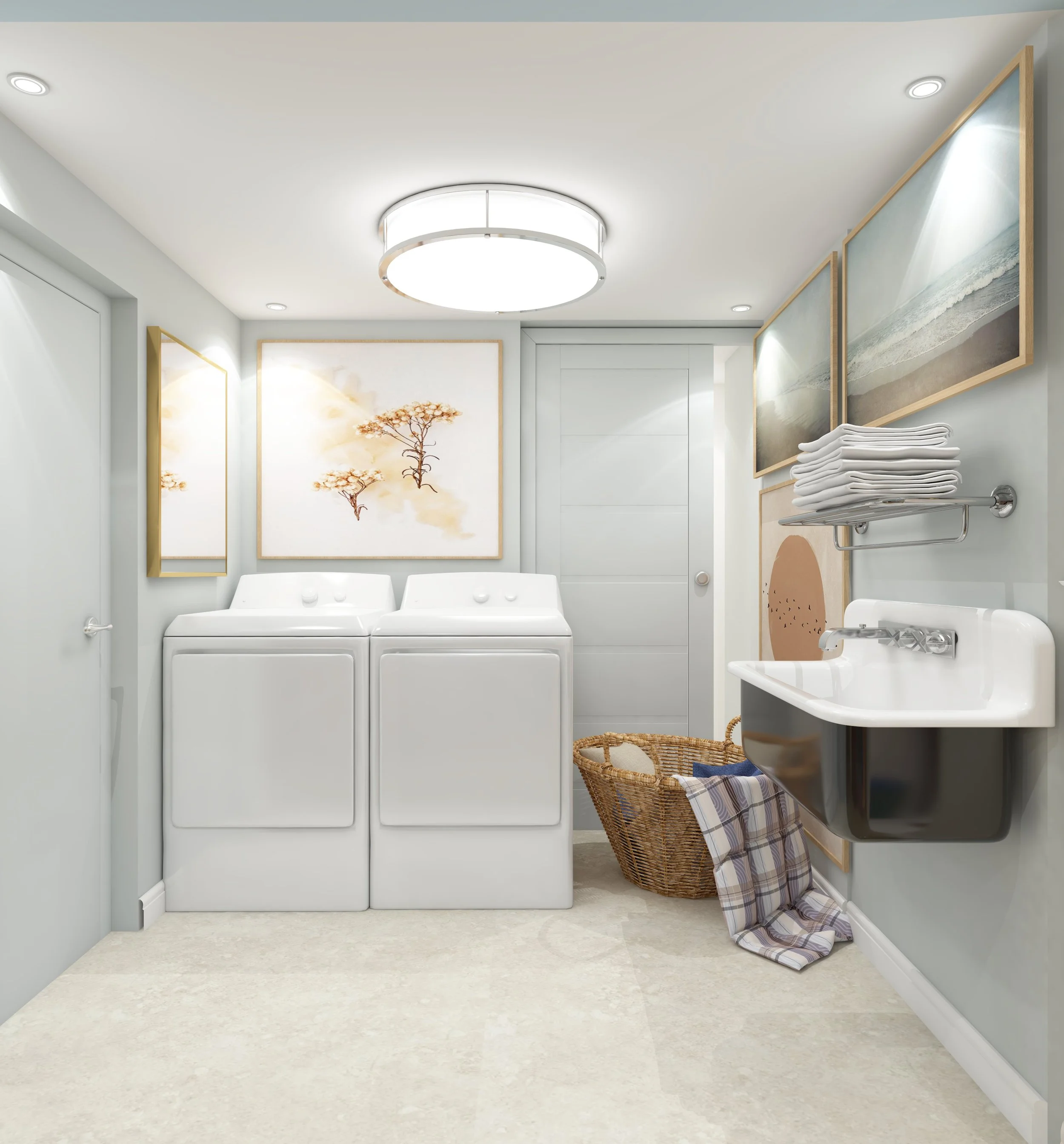 Even the lowliest of rooms deserves a little DL TLC. This laundry room was among the dingiest we’ve ever encountered and is now light, bright, clean, and fresh.