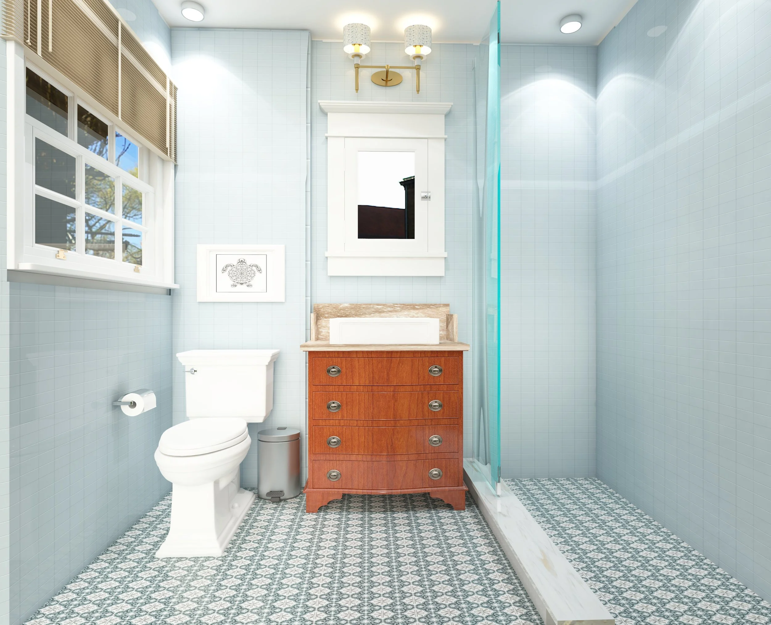 Design Librarian really puts the service in full service interior design. We designed and renovated a petite South Philly bathroom and lovingly created a custom mosaic for the client’s bathroom floor - 1” at a time - right here at DL HQ. If you opt into comprehensive design services, you will never need a bail out - we’ve already got you covered.